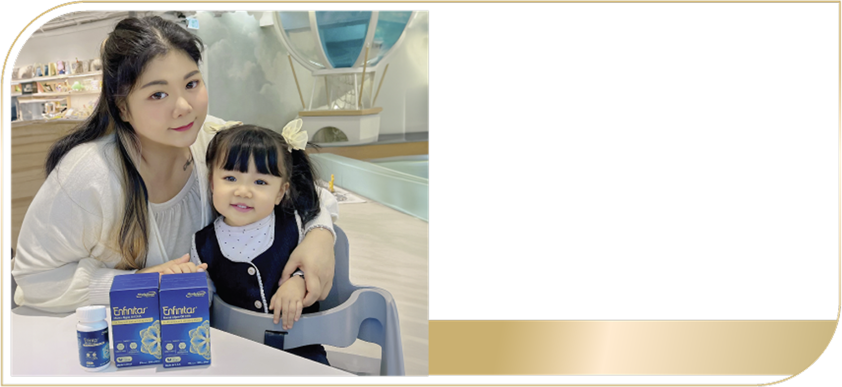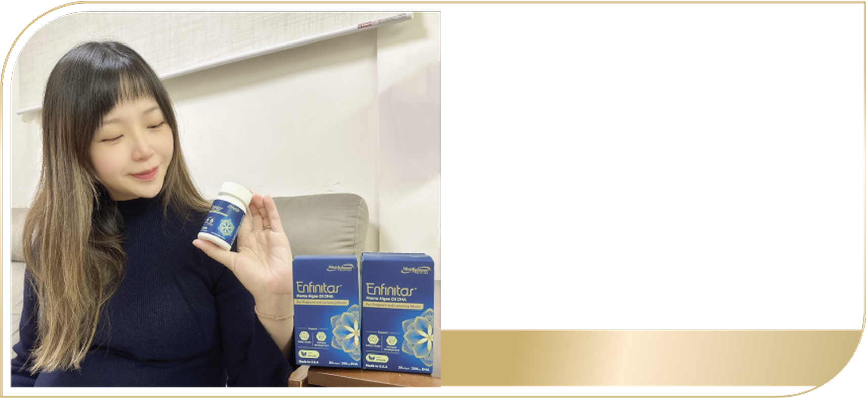 # 根據美贊臣e訂購於2023年7月之調查。調查對象為美贊臣Enfinitas媽媽藻油DHA用家。樣本數目為71。滿分指於用家評論中給予最高分5分。